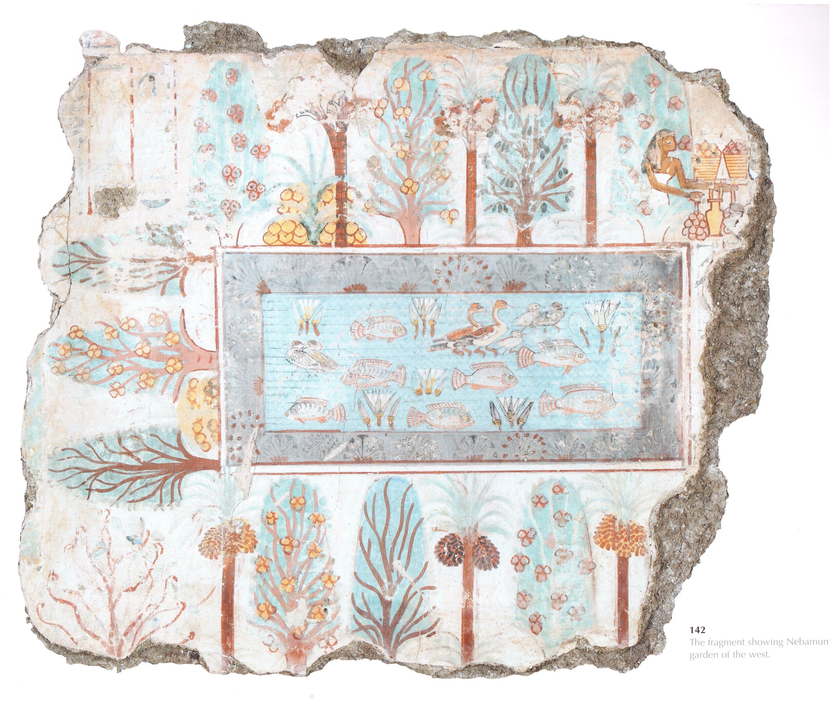이집트 서테베의 죽은 자들의 도시에서 발견된 네바문의 석묘의 벽화에 그려진 정원을 말한다. 낙원과 같은 저세상의 정원을 보여 준다. 그림의 오른 쪽 상단에 보면 돌무화과나무에서 여신이 나타나 무덤 주인에게 과일을 주며 환영하고 있다. 이 여신은 환생을 책임지고 있는 하늘의 여신 누트Nut 이다. 이는 정원이 저 세상에 속한다는 사실을 확인해 준다.