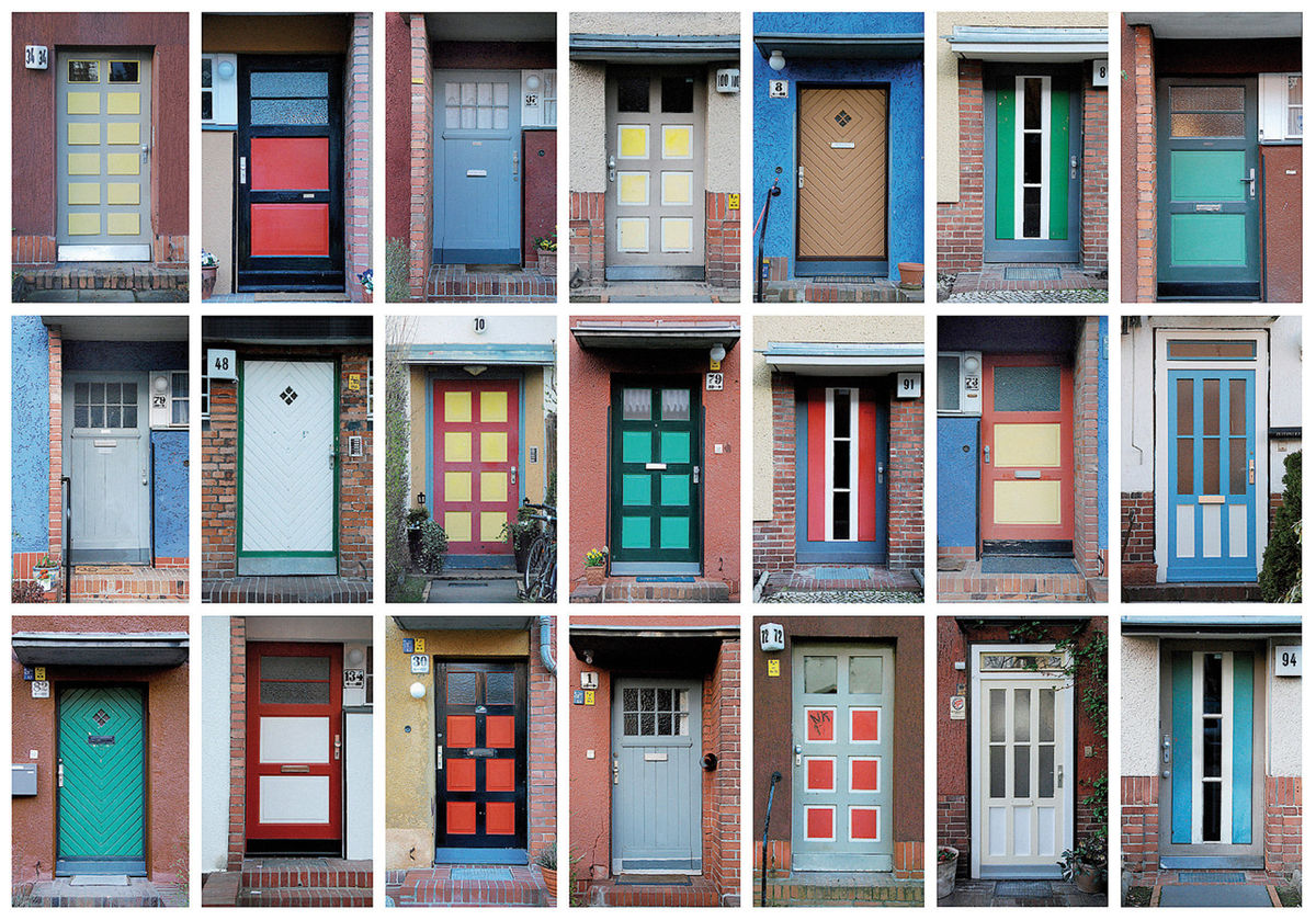 브루노 타우트의 말굽 단지 주택 출입문 디자인 모음. © BenBuschfeld, Wikimedia Commons, CC BY 3.0