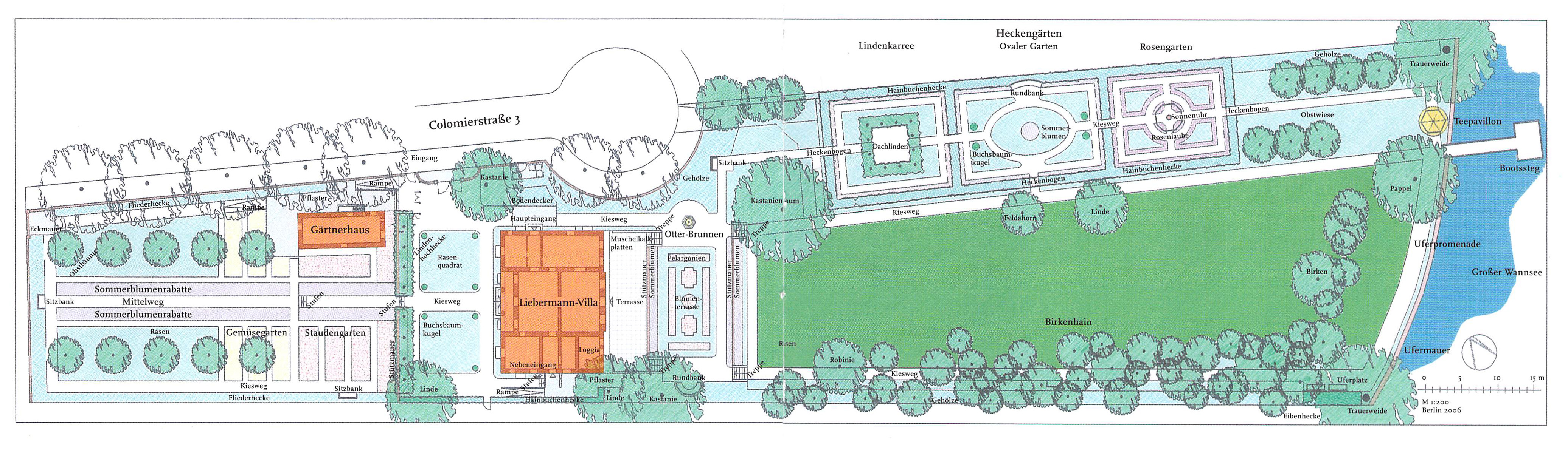 리버만은 빌라와 정원이 완성된 1914년부터 1935년 세상을 떠날 때까지 해마다 이곳에서 여름을 보내면서 약 이백 점의 정원그림과 수많은 그래픽을 남겼다. 그의 사실주의적 화풍 덕으로 훗날 정원을 복원하는 데 큰 도움이 되었다. 정원 복원은 정원문화재 복원 전문가로 착실하게 경력을 쌓은 베를린의 조경가 라이날드 에커르트가 맡았다.