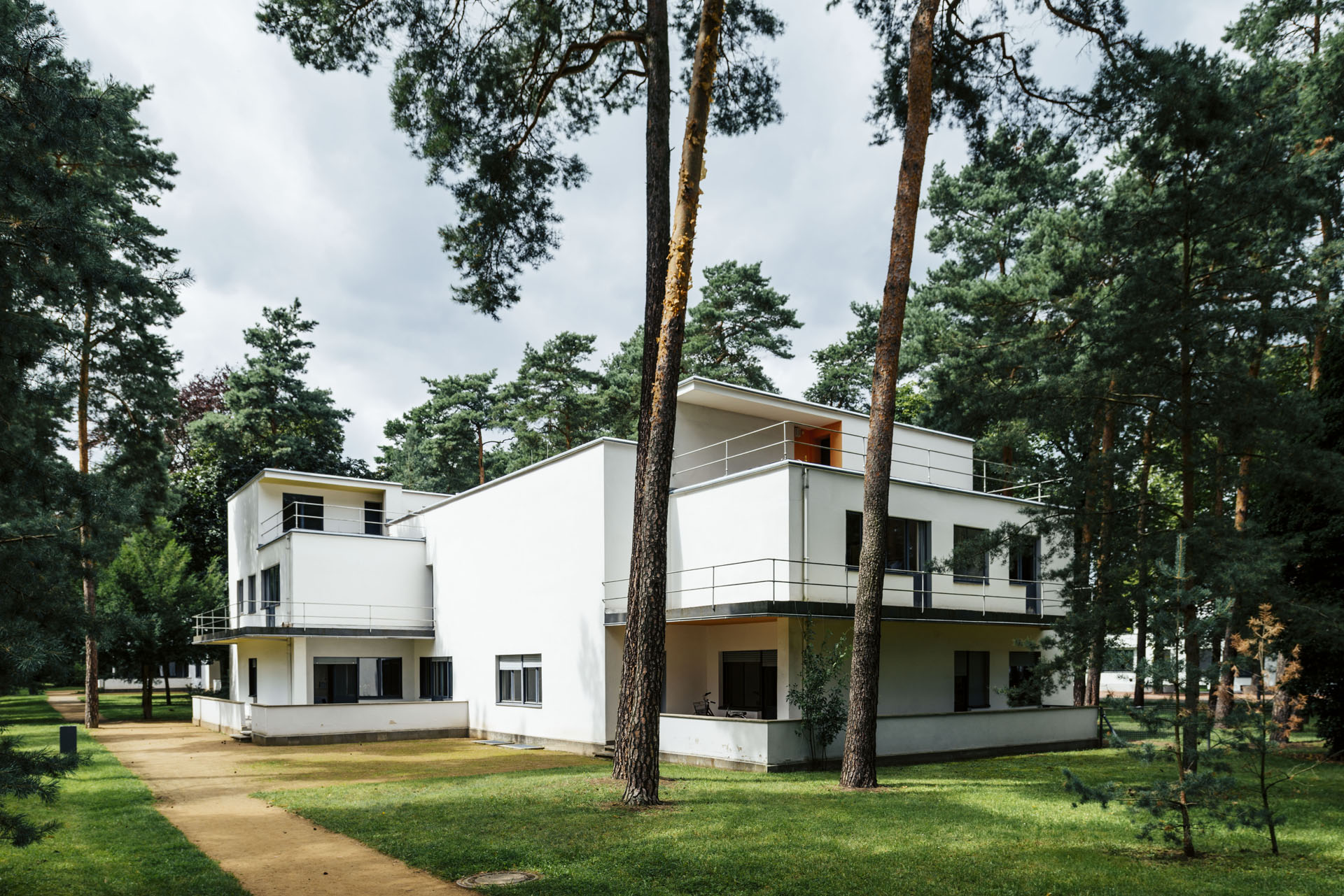 데사우 바우하우스 본관 근처에 지은 교수 주택. 데사우 시에서 지어주었고 건설계는 바우하우스 초대 교장 발터 그로피우스가 맡았다.